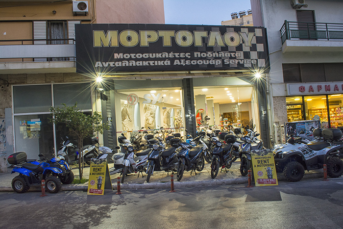 The company ‘’Mortoglou Bikes’’ has been operating in motorbikes sector since 1930, for four generations. Until now the company’s activities were both selling and repairing. This year we have decided to develop our activities in rental, with a brand new fleet of bikes and ATVs and give to our customers the opportunity to explore the sights of Chania. It would be our pleasure to offer you our services.